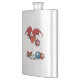 Um dragão vermelho giro num copo de martini segurando uma azeitona verde. Ornamentos, azeitonas verdes e um presente à sua volta.