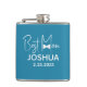 Garrafinha de casamento personalizada presente para o padrinho que pode ser personalizado com o nome do padrinho, bem como a data do casamento. A garrafinha azul poeira tem um design elegante e moderno com uma gravura de gravata borboleta. Um ótimo presente para o noivo dar ao seu padrinho.