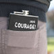 A coragem líquida é escrita em uma pia batismal quebrada do texto do grunge no branco em um fundo preto. Álcool engraçado, bebendo, bourbon, escocês, tema. Mantenha como é, ou personalize e mude ou suprima do líquido da palavra acima dele segundo a personalidade do bebedor ou personalize todo o texto. Um design do álcool ou do happy hour do divertimento com um bocado de pre treme humor para o noivo do casamento, ou todo o amigo.