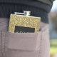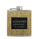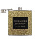 Frasco de Noivo Preto e Dourado Luxuoso com Brilho e Monograma. Sofisticado, elegante, glamoroso.
