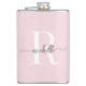 Frasco Personalizado Moderno Feminino Elegante Rosa Bege com Monograma Inicial Nome Assinatura Script. Apresentando um primeiro nome (ou sobrenome) em uma linda tipografia de letra manuscrita com cauda swash (ou caligrafia) com monograma inicial em branco e preto sobre fundo rosa bege. Ótimo presente feminino elegante para aquecimento de casa, também para despedida de solteira, para madrinha, casamento, dia das mães, aniversário, festa de aniversário de 16 anos, chá de noiva, para festa de formatura e é para a garota que ama coisas elegantes e estilosas únicas.