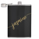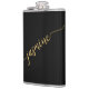 Garrafa Minimalista Feminina Simples Preto e Dourado Monograma Nome Assinatura Rótulo Personalizado. Estes desenhos apresentam seu primeiro nome em uma linda tipografia de assinatura com estilo de letra manuscrita e cauda ornamentada sobre fundo preto e dourado. São fáceis de personalizar. Ótimo presente feminino e elegante para festa de despedida de solteira, presente de inauguração, também para Festa de Despedida de Solteira, aniversário, dia das mães, casamento, festa de aniversário de 16 anos, festa de chá de noiva, para festa de formatura e É para a garota que ama coisas únicas e elegantes.