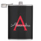 Nome do Monograma Vermelho e Preto e Flask Inicial. Isto faz o doce e perfeito aniversário de 16 anos, casamento, chá de panela, aniversário, chá de fraldas ou festa de solteira presente para alguém que ama luxo de luxo e estilos quíticos.
