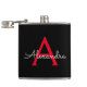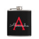 Monograma Vermelho e Preto Adicione Seu Próprio Nome Fator Flask. Isto faz o doce e perfeito aniversário de 16 anos, casamento, chá de panela, aniversário, chá de fraldas ou festa de solteira presente para alguém que ama luxo de luxo e estilos quíticos.