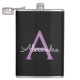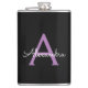 Nome do Monograma Roxo e Preto e Flask Inicial. Isto faz o doce e perfeito aniversário de 16 anos, casamento, chá de panela, aniversário, chá de fraldas ou festa de solteira presente para alguém que ama luxo de luxo e estilos quíticos.