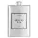 Chic e mínimo francês, parisiense inspirado, preto e branco monocromático, frasco de padrinho de casamento personalizado com nome de quadril. Personalize com o nome do padrinho de casamento e o destino do casamento em uma fonte de sans mínima chic. Projetado para combinar com nossa Coleção Mínima Francesa de Casamentos Pretos e Brancos.