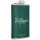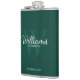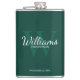 Adicione um toque pessoal ao seu casamento com um frasco de padrinhos de casamento personalizado. Este frasco apresenta o nome personalizado do padrinho de casamento no estilo de letra branco clássico do script com detalhes do casamento no estilo de letra branco clássico do serif e monograma no estilo de letra verde-esmeralda-esmeralda-clara como fundo, no fundo verde-esmeralda. Também perfeito para o melhor homem, pai da noiva e mais.