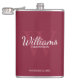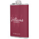 Adicione um toque pessoal ao seu casamento com um frasco de padrinhos de casamento personalizado. Este frasco apresenta o nome personalizado do padrinho de casamento no estilo de letra branco clássico do script, com detalhes de casamento no estilo de letra branco clássico do serif e monograma no estilo de letra vermelho claro do serif clássico vermelho-vermelho como fundo, em fundo vermelho-burgundy. Também perfeito para o melhor homem, pai da noiva e mais.