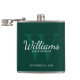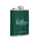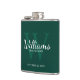 Adicione um toque pessoal ao seu casamento com um frasco de padrinhos de casamento personalizado. Este frasco apresenta o nome personalizado do padrinho de casamento no estilo de letra branco clássico do script com detalhes do casamento no estilo de letra branco clássico do serif e monograma no estilo de letra verde-esmeralda-esmeralda-clara como fundo, no fundo verde-esmeralda. Também perfeito para o melhor homem, pai da noiva e mais.