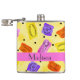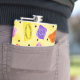 Carregar a sua bebida favorita consigo quando viagem ou comparece a eventos com este nome de frasco personalizado. Excelente para um amante de viagem com uma viagem de design. A arte original com uma arte de carimbo de passaporte antiga é personalizada com o seu nome ou outras palavras. Esta arte original é em cores rosa-quente, roxo-lavanda, amarelo e laranja sobre fundo amarelo e é da designer de tecidos Phyllis Dobbs. Os pontos negros são aleatórios entre os carimbos dos passaportes. Uma tira rosa-quente dá uma área para a personalização com um nome ou outras palavras. Totalmente personalizável e um presente de excelente para alguém que está viajando.