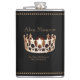 Um pouco de conforto em casa onde quer que você vá para celebrar no estilo. Coroa Dourada a negrito impressa apenas na frente, junto com texto para você personalizar com o seu. Dourado padrão de diamante colorido no topo e no fundo do frasco. Coloração prateada, preta e Dourada. Coroa estilo Miss EUA.