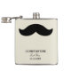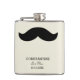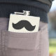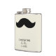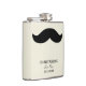Um frasco à moda antiga com um bigode preto grande, o nome do seu melhor homem, o seu papel e a data do casamento.