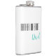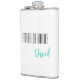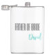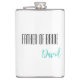 Frasco para o pai da noiva é mostrado em branco com texto preto e azul-turquesa e tem um nome de exemplo.