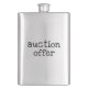 Texto engraçado dizendo T-shirts, canecas, bolsas, cartões, adesivos, correntes-chave, ímanes e muitos outros itens com texto preto ou branco que lê Oferta de Leilão!