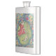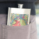 Carry a timeless moment with you in this unique classic flask. This captivating Japanese Nihonga masterpiece, titled "Omohide Garasu" (おもひで硝子), captures a joyful moment from Japan's Edo period, where a young maiden in a beautiful kimono plays playfully with a cat. Their happy interaction is framed by delicate, floating patterns resembling colorful glass marbles or bubbles, creating a whimsical and dreamy atmosphere.
