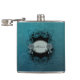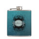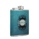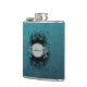 Fundo de damascos azuis profundamente sombreados e gravados com medalhão preto gravado a centro, com embelezamento de rosa gravado para personalização.