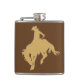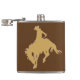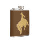 Esta garrafa caracteriza uma silhueta bucking do cavalo e do cavaleiro do ouro em um fundo marrom. Na parte traseira é um campo para seu nome no ouro de harmonização. os *This projetam gráficos Factory.com do © da imagem dos usos *