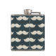 Forma clássica do bigode com arestas estilhaçadas ilustradas em padrão repetido em frasco personalizado preto, ideia de presente de excelente para padrinhos de casamento e melhor homem.