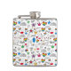 Este trabalho de arte apresenta um padrão que inclui vários símbolos relacionados ao orgulho gay num design colorido.