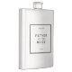 Chic e mínimo francês, parisiense inspirado, negro monocromático e branco personalizado pai da noiva do frasco do quadril. Personalize com o nome do pai e o destino do casamento em uma fonte de sans mínima chic. Projetado para combinar com nossa Coleção Mínima Francesa de Casamentos Pretos e Brancos.