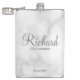 Presentes personalizados de Padrinho de casamento com nome de padrinho de casamento personalizado no estilo de fonte moderno de script de cinza com título e data de casamento no estilo de fonte sans moderno em fundo de mármore branco. Perfeito também para o melhor homem, pai da noiva, dama de honra, madrinha de casamento, mãe da noiva e muito mais. Observe que os detalhes do mármore são simulados no trabalho de arte. Não será utilizado nenhum mármore real no fazer deste produto.
