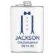 Esta garrafa de 240 ml é ótima para os padrinhos. Se toda a comitiva de casamento estiver usando ternos, este design com suspensórios e gravata borboleta azul seria perfeito. Casual, mas formal. Seria ótimo para um fim de semana de despedida de solteiro ou uma festa de despedida de solteiro. Um presente divertido para um momento inesquecível. Compre uma para todos do cortejo - eles vão adorar! O título pode ser alterado para noivo, padrinho, convidado, etc.