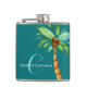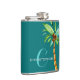 Este elegante frasco de favos tropicais pode ser personalizado com o nome e monograma inicial do seu melhor homem, padrinhos de casamento, contínuos, pai da noiva, pai do noivo, ou qualquer outro na sua festa de casamento. Apresenta um fundo azul de turquesa teal, uma palmeira tropical, e uma elegante escrita com letra de mão e tipografia clássica. Faz um presente de excelente ou um favor aos membros do seu partido noivo.