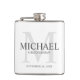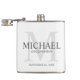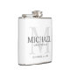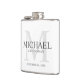 Adicione um toque pessoal ao seu casamento com um frasco de padrinhos de casamento personalizado. Este frasco apresenta um nome de padrinho de casamento personalizado com título e data de casamento em cinzas e monograma em cinzas leves como fundo, em estilo serif clássico, em fundo branco. Também perfeito para o melhor homem, pai da noiva e mais.