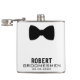 Presente de Casamento de Nome e Data Personalizados. Comemore seu dia de casamento em estilo com este frasco de padrinhos de casamento personalizado elegante e moderno, com um gráfico de gravata em arco preto e texto personalizado para cada membro da festa de casamento. Adicione o nome do padrinho de casamento e sua data especial para uma manutenção significativa que eles usarão. Com fundo branco limpo e letras negras nítidas, este frasco é a combinação perfeita de elegância e diversão - ideal para as despedidas, as torradas do dia do casamento ou presentes obrigado-você para as suas melhores caras.