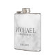 Padrinhos de casamento Personalizados de Mármore Branco Elegante Clássico Ofertas com nome de padrinho de casamento personalizado, título e data no estilo de fonte serif clássico em fundo de mármore branco. Também perfeito para o Melhor Homem, Pai da Noiva e mais.