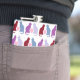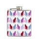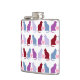 Estilo silhueta de gato bonito em roxo e blues com corações cor-de-rosa no meio. Frasco de anca.