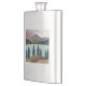 Esta linda paisagem de abstrato mostra uma cena de montanha com um lago e um céu multicolorido em tons de vermelho, ciano, azul, amarelo e ouro.