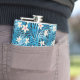 A palma deixa um padrão uniforme azul com flores de frangipani. © e ® Bigstock® - Todos os direitos reservados.