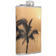 Silhuetas de palmeiras contra o céu do pôr do sol.