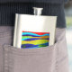 Uma paisagem abstrato de colinas rolantes em cores vibrantes brilhantes com linhas angulares.