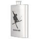 Seu esquiador favorito vai adorar jogar sua bebida favorita neste frasco personalizado que apresenta um simples gráfico preto, em estilo silhueta, de um esquiador fazendo um truque de esqui. Está pronto para ser personalizado com um nome em letras negras correspondentes abaixo.