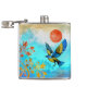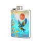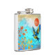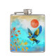 Este lindo design retrata um pássaro azul e dourado fazendo uma aterrissagem em uma árvore ouro com um belo céu de muitas cores azuis e um sol laranja ousado.