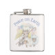 Um frasco pastoral doce. Projetado com um anjo sereno com asas amarelas segurando um pastor. Sentado ao lado de 2 borregos brancos. A aquarela oscila em torno da imagem se misturando em um fundo branco da casca do ovo. O texto diz: paz na Terra.