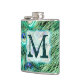 Cantil Peacock Bird Feather Teal Monograma Whiskey Flask