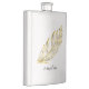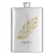 Frasco elegante apresenta uma pena brilhante no efeito de folha de ouro falso e personalização da sua escolha. NOTA: folha de ouro é uma imagem digital e não uma folha real. Excelente de presente da dama de honra!
