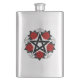 Pentagrama preto com padrão, decorado com floração, rosas vermelhas com folhas em fundo branco. Tatuagem.