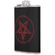 Pentagrama vermelho, invertido, texturizado em círculo, sobre fundo preto. Símbolo oculto. 666
