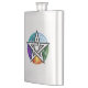 Pentagrama luminoso desenhado artificialmente com cinco elementos mágicos, água, terra, fogo, astral, ar sobre fundo negro. Pentagrama Wiccan. Wicca