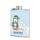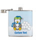 Um pequeno desenho animado de pinguim sentado segurando uma bola de neve. Texto personalizado.