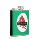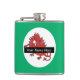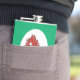 Um na moda Hip Flask para personalizar com um pequeno dragão vermelho giro segurando um lugar para adicionar o nome do proprietário.