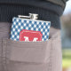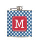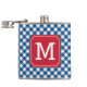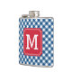 Frasco monograma de na moda com um padrão de gingham azul. Faz um presente personalizado excelente. Personalize-o substituindo o texto do marcador de posição. Para obter mais opções, como alterar a fonte e seu tamanho, clique no botão "Personalizar". *Observe que a Marca d'água do Zazzle que aparece na visualização de zoom não aparecerá no produto impresso final. © Rosewood e Citrus