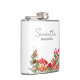 A red floral personalized wedding flask perfect for bridesmaid gifts, bridesmaid proposal gifts, Bachelorette Part gifts and bridal shower decor. Customize the tumbler to your name and title and create a unique wedding party gift.