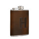 Impress him with this custom brown leather hip flask, featuring a stylish embossed monogram initial 'H'. Crafted from durable stainless steel and wrapped in rich brown leatherette, it's the perfect personalized gift for groomsmen, dads, birthdays, or any whiskey lover. Holds 6-8 oz of his favorite spirit.