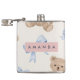 This set includes a throw pillow, an accessory pouch, a spiral notebook, a compact mirror, a flask, an apron, a can cooler, an insulated tumbler, a ceramic mug, a laptop sleeve, and a tote bag. The cute teddy bear and bow pattern is on all of the items, so they all look good together whether you buy one piece or make a matching set to give as a gift.