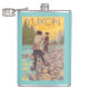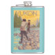 A pesca com mosca das mulheres - Yukon, Alaska - poster das viagens vintage foi criada em 2007. Esta imagem descreve cenas da conserva nacional de Yukon, AK.